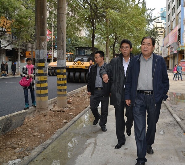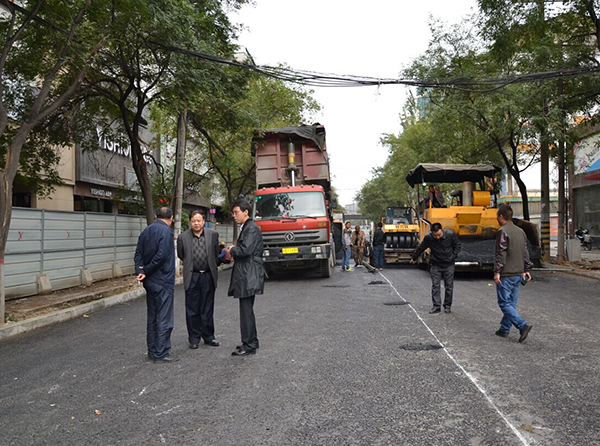 下圖為:咸陽(yáng)市城建局韓保鋒局長(cháng)、咸陽(yáng)市市政工程管理處楊偉生主任、咸陽(yáng)市建筑安裝工程總公司趙拓總經(jīng)理等在樂(lè )育路施工現場(chǎng)檢查、指導工作。